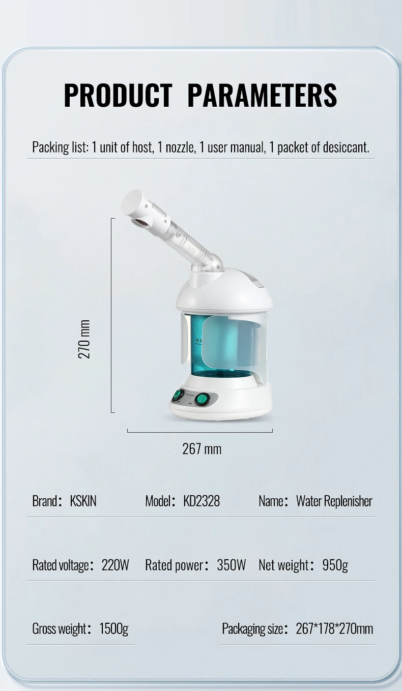 KSKIN Professional Beauty Equipment Skin Care Nano Hydration Warm Misting Face Spray Rotated 360 Portable Facial Steamer